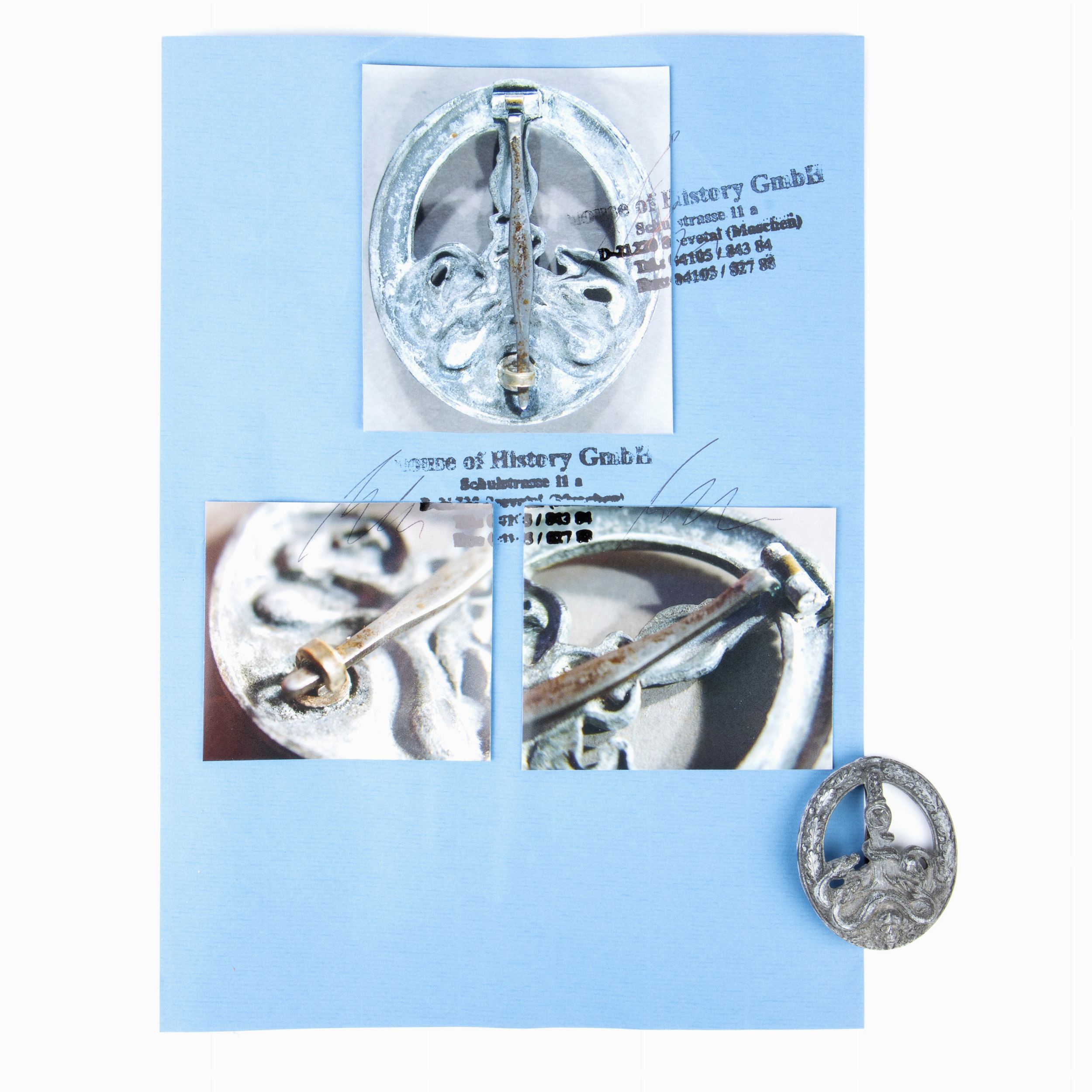 prima metà XX sec. rarissimo distintivo per la lotta antiguerriglia, kriegsmetal con spilla e gancio in ottone, il distintivo viene venduto con certificato di garanzia rilasciato al vecchio acquirente da house of history, negozio specializzato nella vendita di cimeli del III Reich