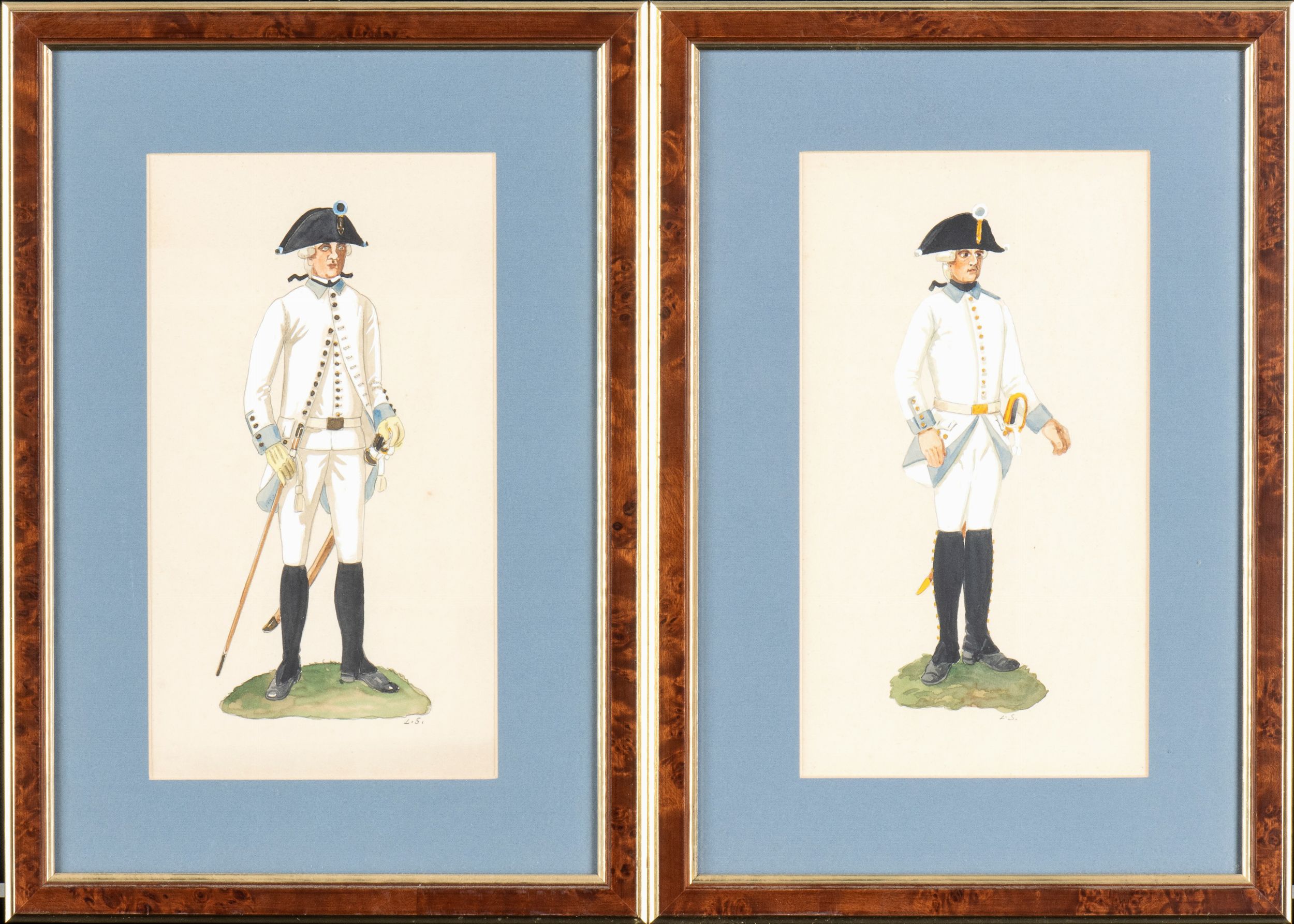 Due gouaches raffiguranti uniformi dell'esercito tedesco del XVIII secolo