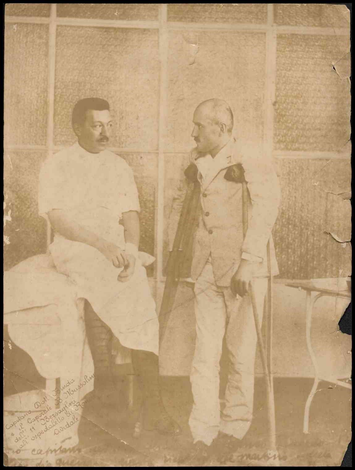 Grande foto di Benito Mussolini con medico curante durante la convalescenza