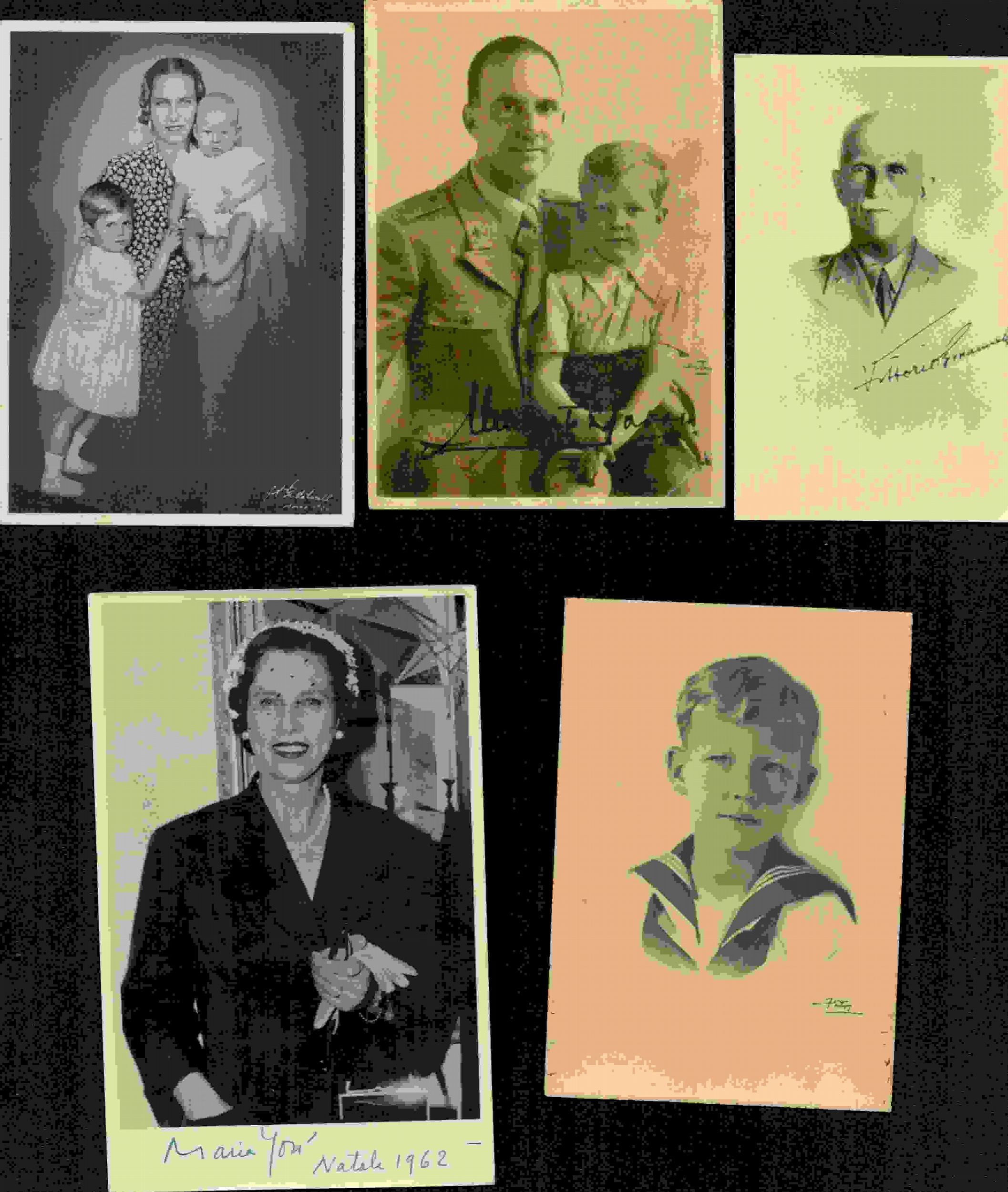 Lotto di 4 foto e 2 cartoline con ritratti dei membri di famiglia Savoia, alcun