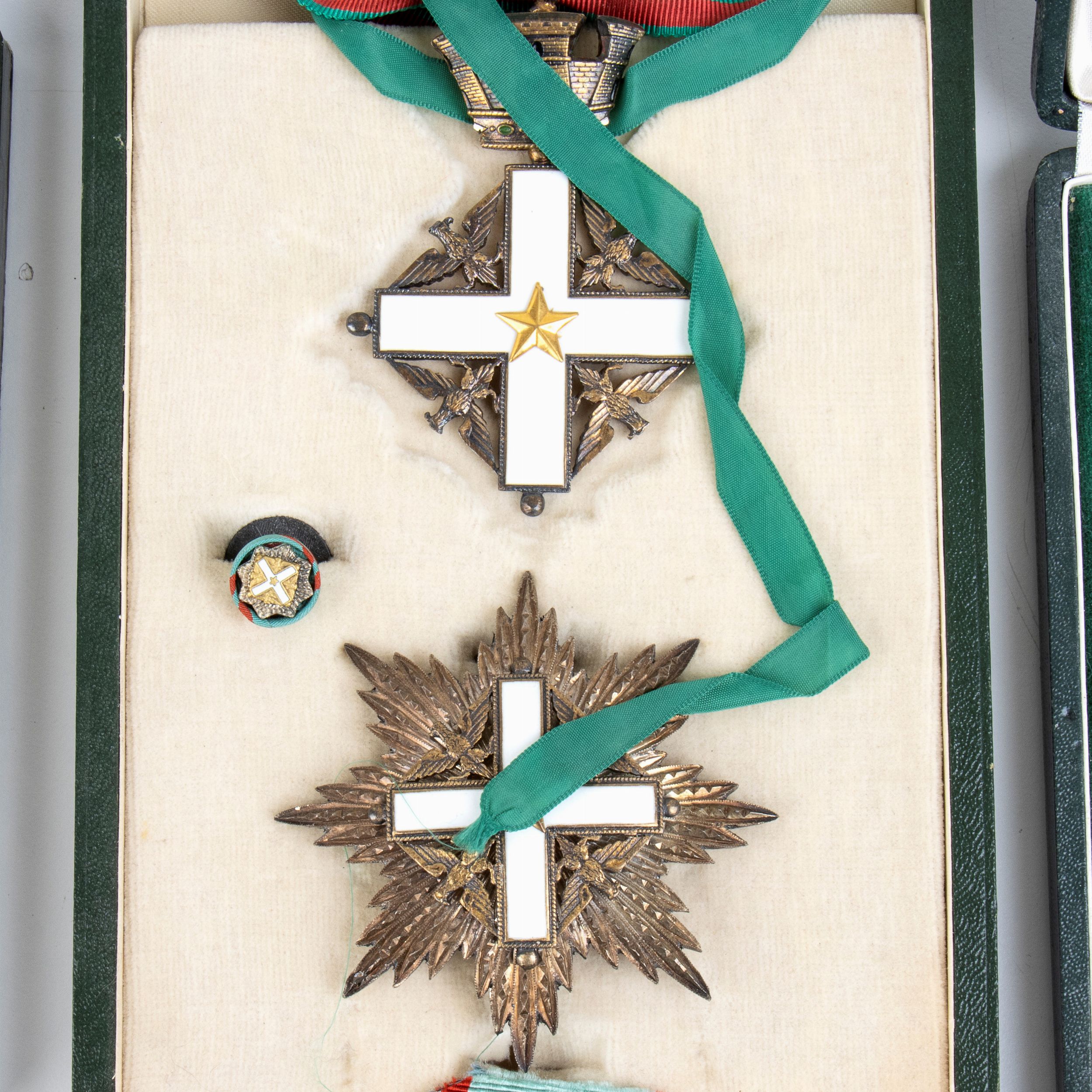 metà XX sec. Lotto composto da una insegna di grand'ufficiale, una di commendatore, un cavaliere ufficiale , tutte in scatola ed un cavaliere senza astuccio, buone condizioni, argento e smalti, nastri originali, al cavaliere ufficiale manca la miniatura.