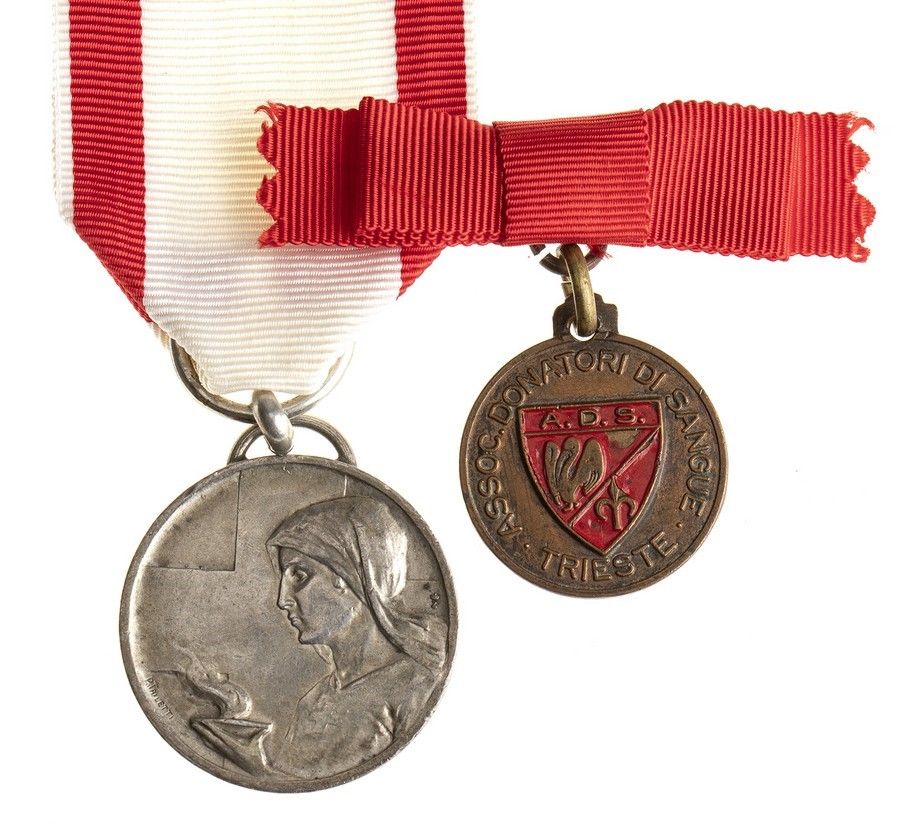 MEDAGLIA AL MERITO DELLA CROCE ROSSA E MEDAGLIETTA DONATORI DI SANGUE DI TRIEST