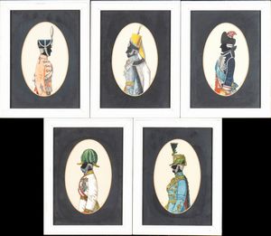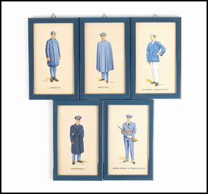 Lotto di 5 rappresentazioni di uniformi di Regia Aeronautica