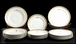 Casa Savoia e corti europee... 6 piatti da frutta, diam. 20,5 cm, 6 piatti tondi 23,5 cm, 6 piatti grandi 26 [..]