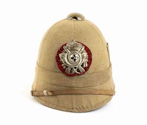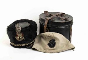 Militaria... in vimini rivestito di tela caki, fregio in lamierino stampato su coccarda, interno in tela di cotone [..]