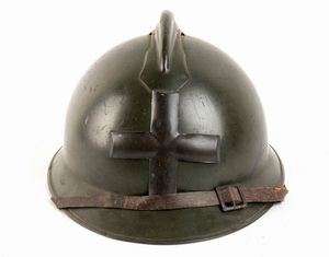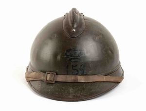 Militaria... Particolare elmetto di fabbricazione privata francese con fregio del 1° Rgt. Alpini dipinto in nero, [..]