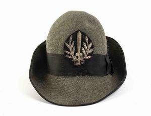 primo quarto XX sec. in castorino grigio, con fregio e grado a bassa visibilità, interno in seta verde, alluda [..]