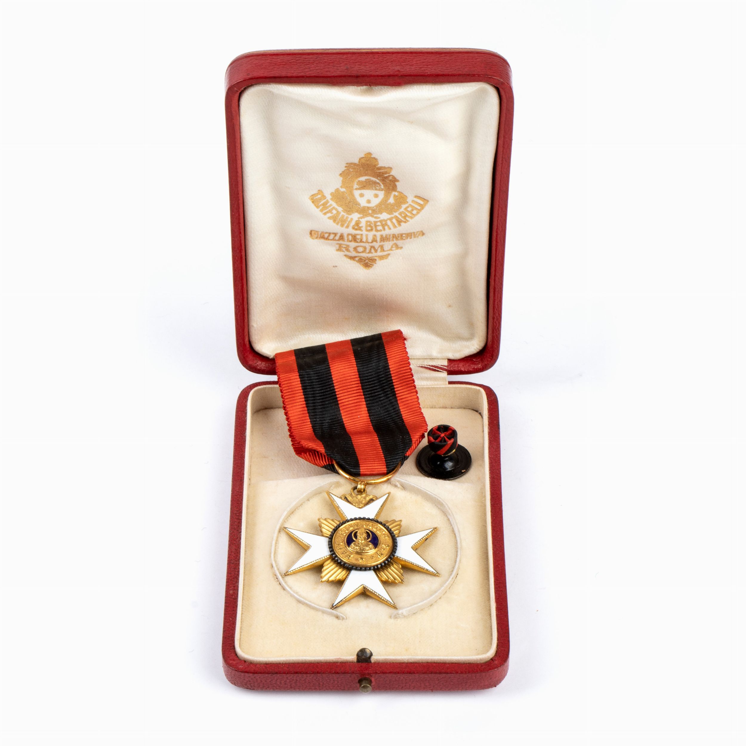 prima metà XX sec. bellissima insegna da cavaliere in oro e smalti, conservata in astuccio con rosetta, Tanfani e Bertarelli, Roma