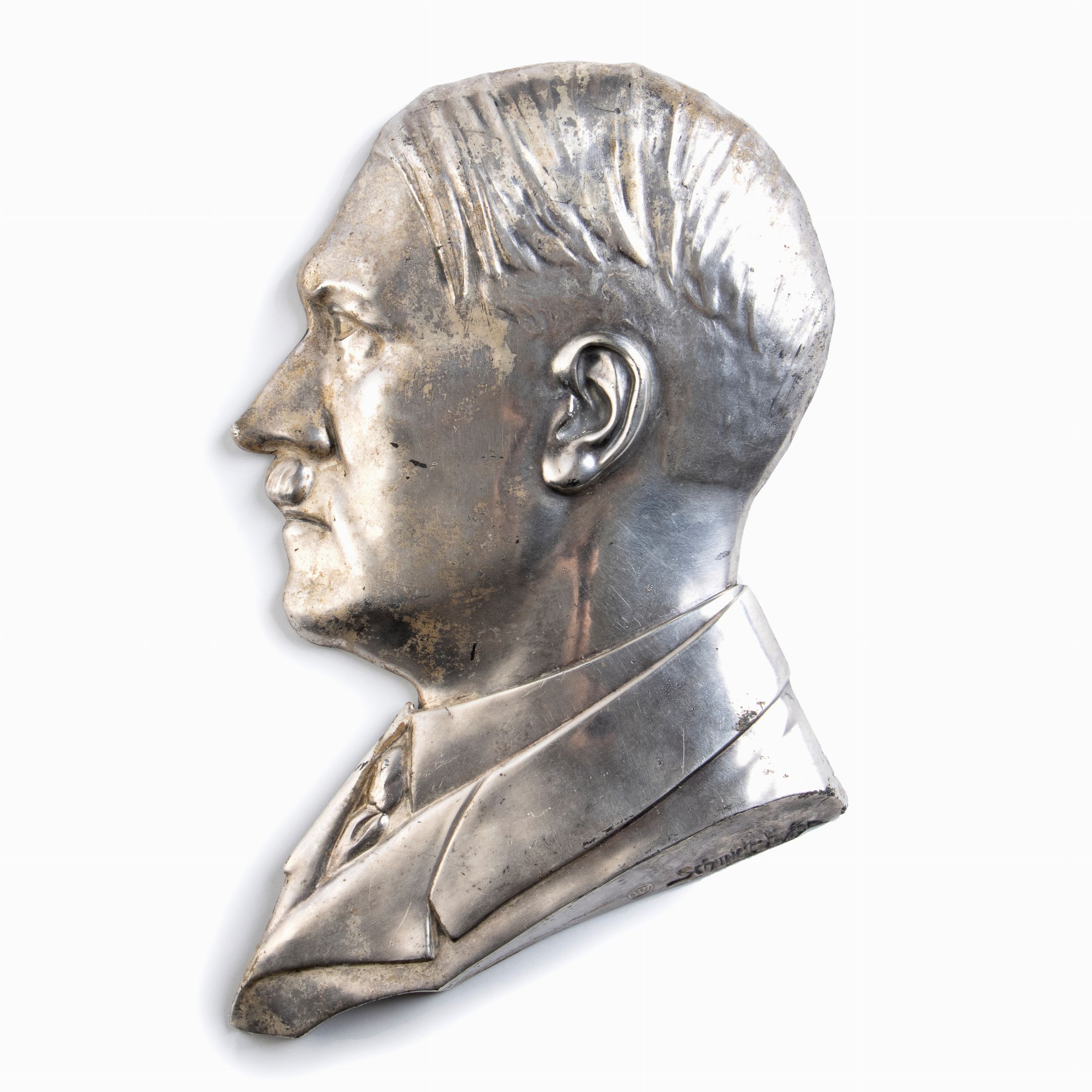 PROFILO IN METALLO AH, firmato, 30X9 cm