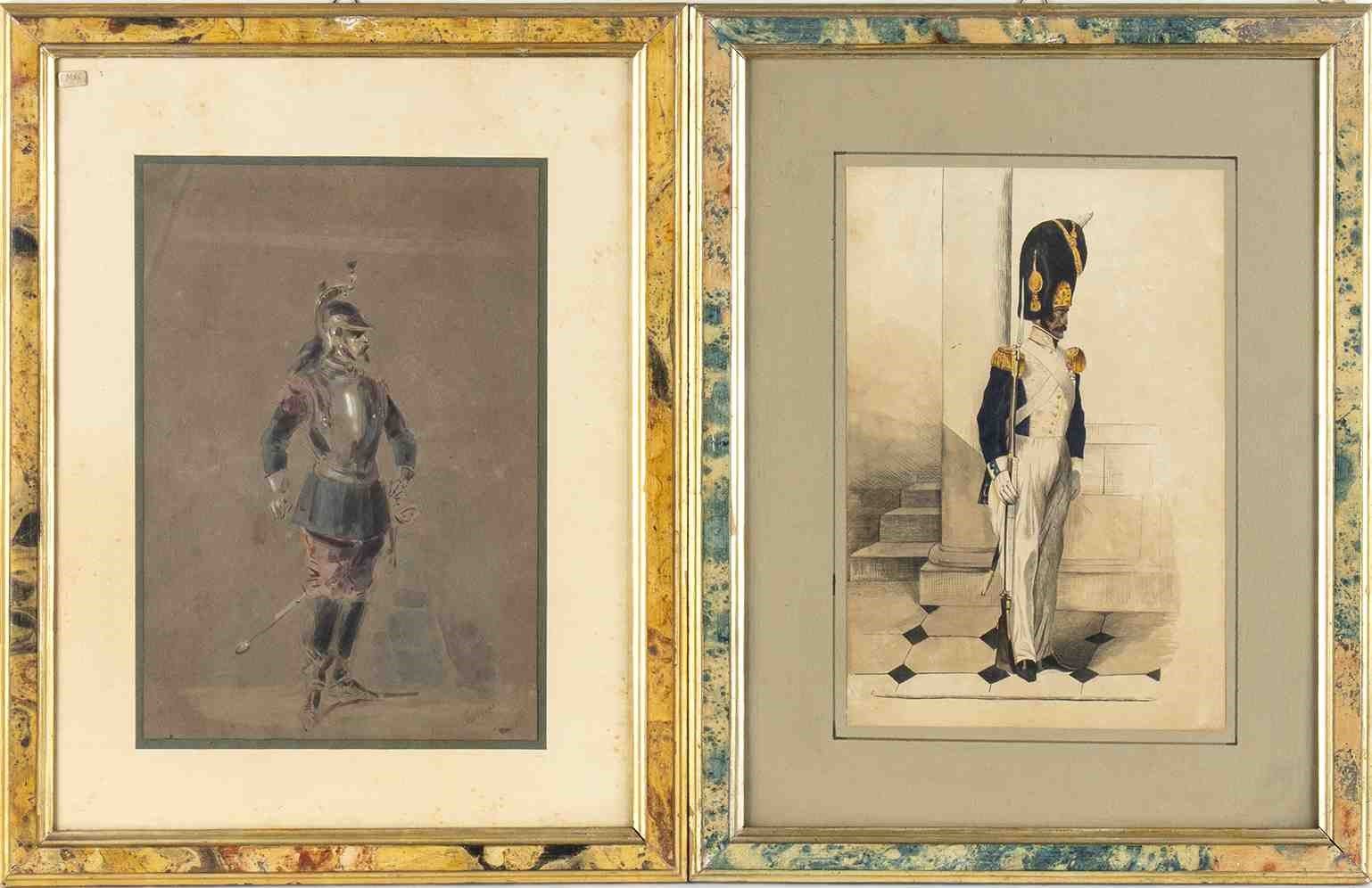 Militaria... gouache su carta, in cornice, 46 x 36 cm