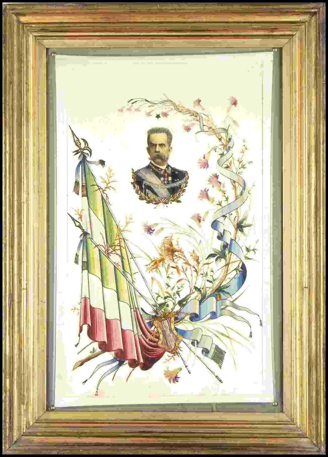 Casa Savoia e corti europee... ricamo su tessuto, con cornice 101 x 71 cm