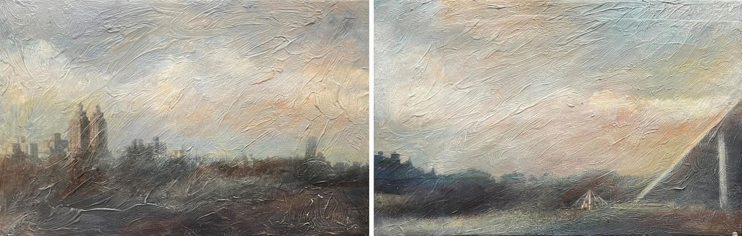 Coppia di oli su tela, cm 22x70 (opera complessiva), cm 22x35 (ciascuna tela)