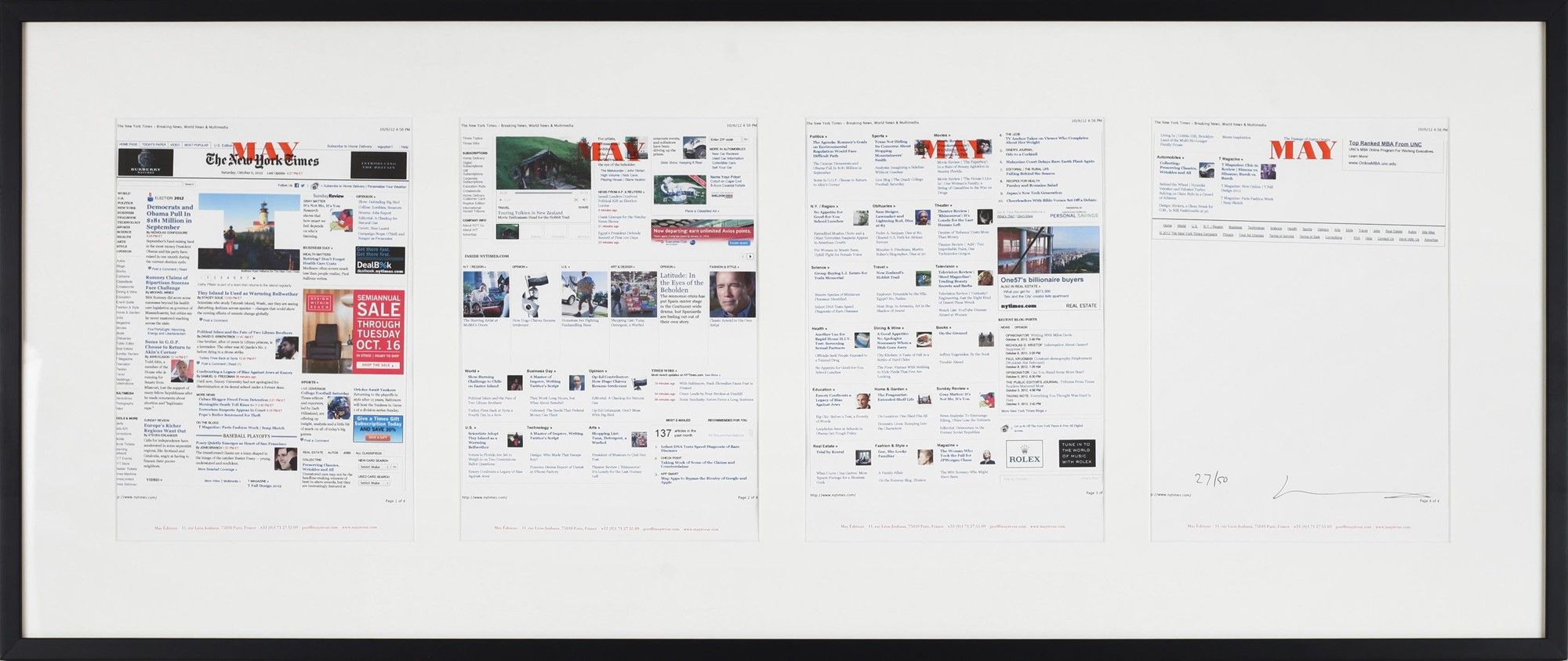 n. 4 stampe a getto d'inchiostro ESPONDURABrite su carta intestata May Editions in cornice, cm 45,5x108 (cornice) - 29,8x21,1 (ciascuno dei quattro fogli)