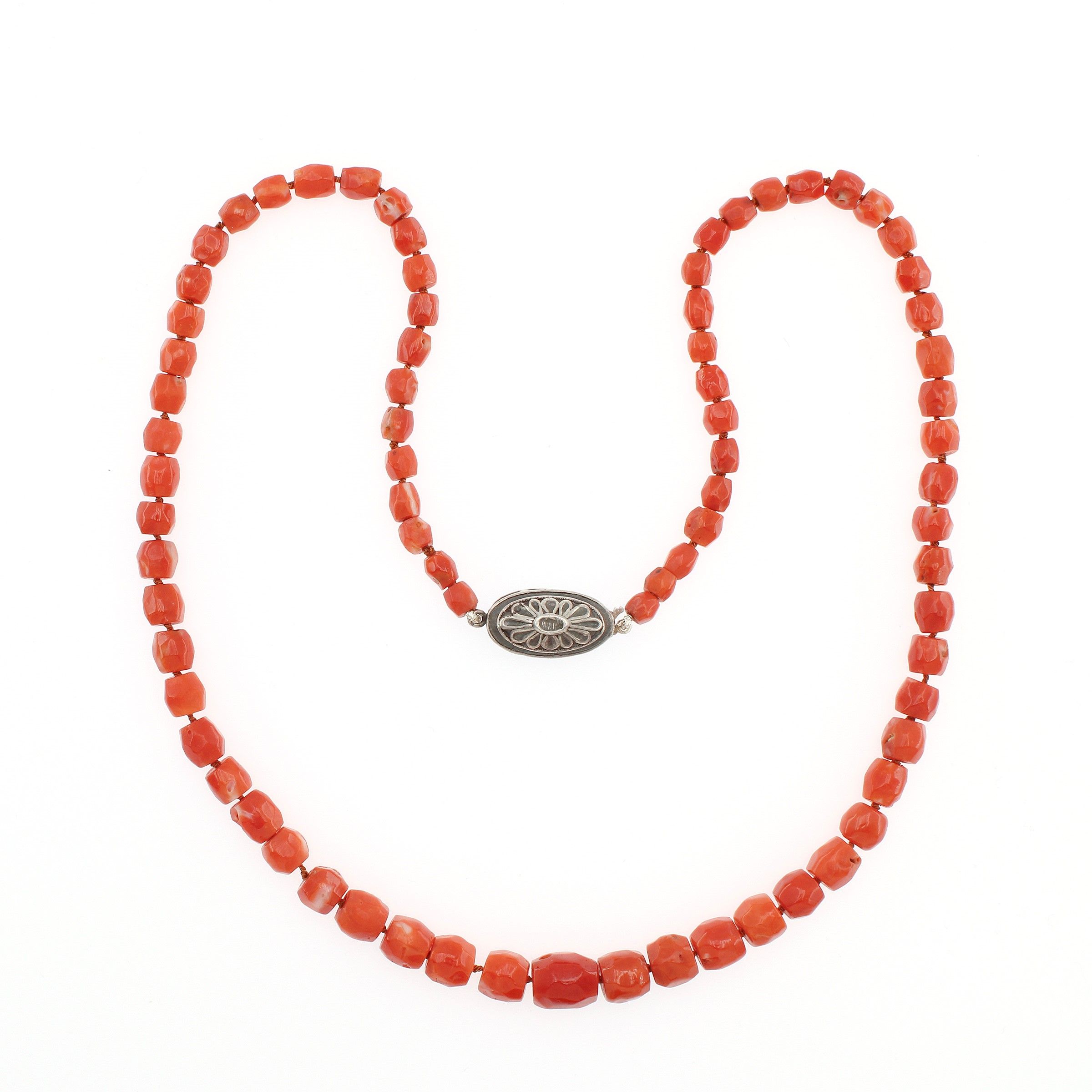 tagliato a barilotti, chiusura in argento, lunghezza 60 cm.