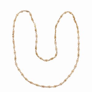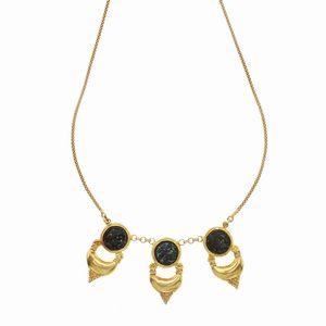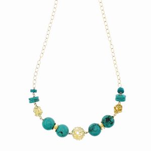 Lunga collana in argento dorato con malachite, madreperla, pietre dure e perle fresh [..]