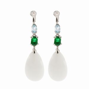 Orecchini pendenti in argento agata bianca e pietre sintetiche