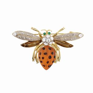 misure 4,5x7 cm. in metallo dorato, strass, resina e smalto