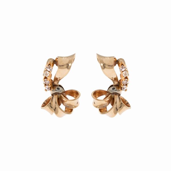 Orecchini a lobo in oro giallo 18kt e rose coroné