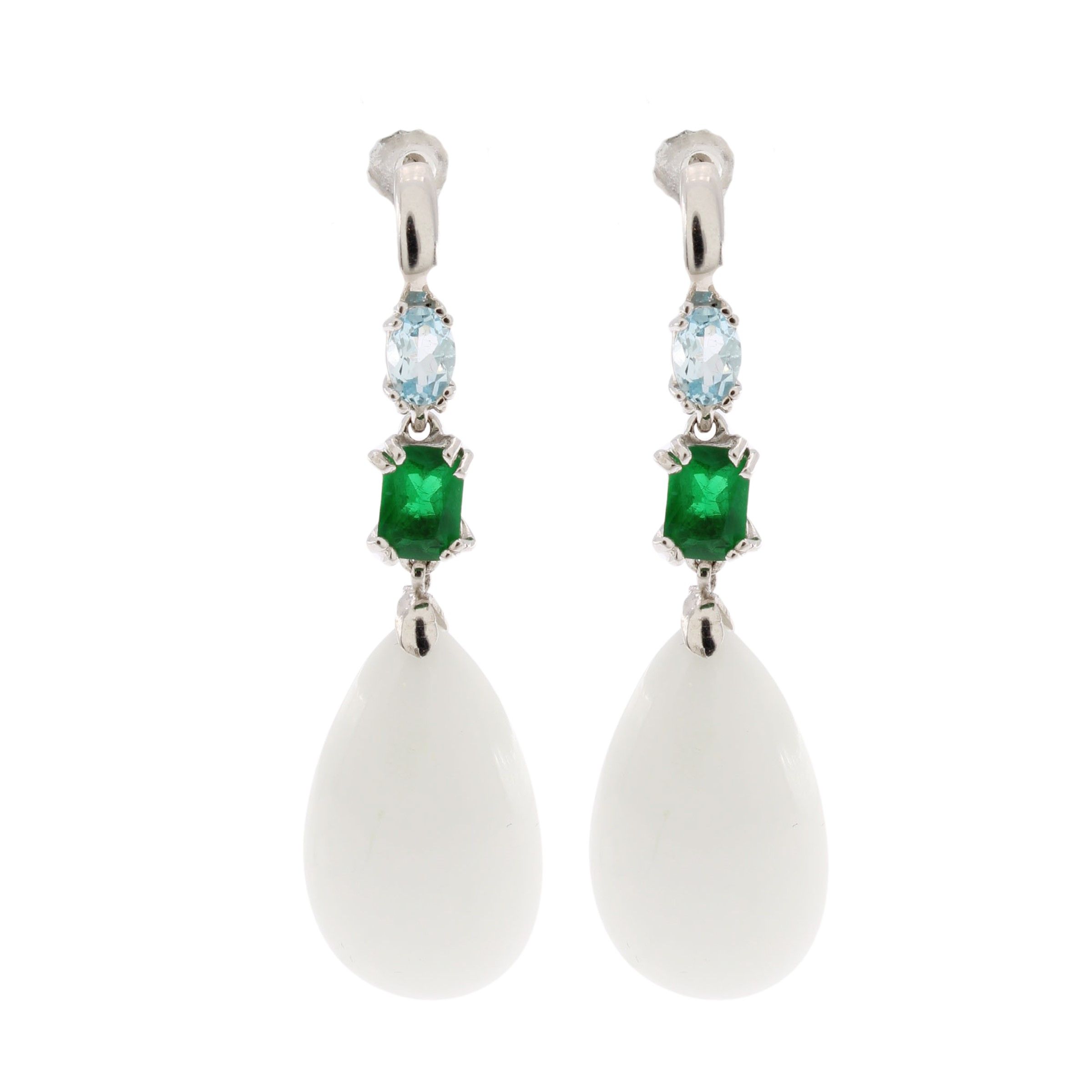 Orecchini pendenti in argento agata bianca e pietre sintetiche