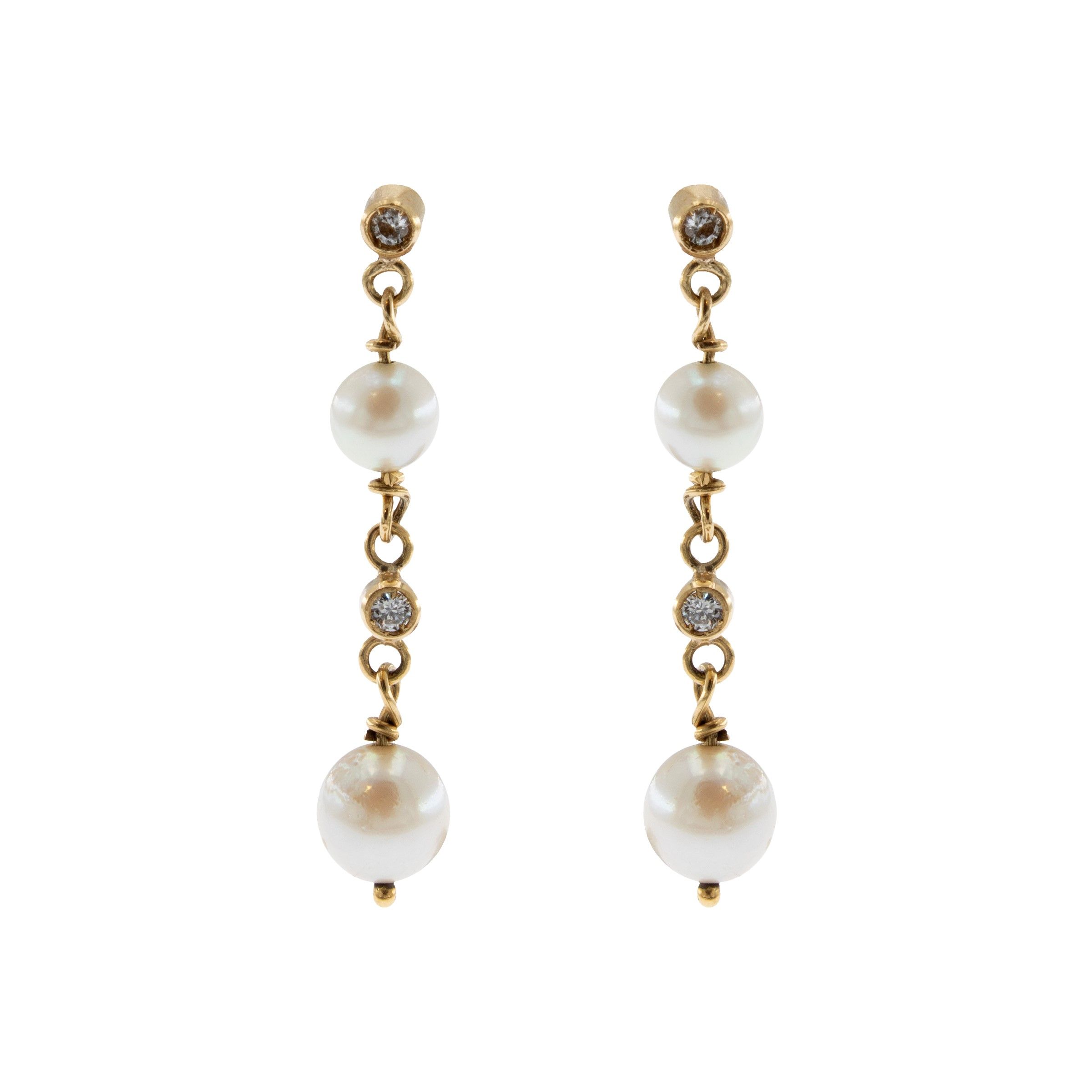 Orecchini pendenti in oro giallo 18kt perle e diamanti