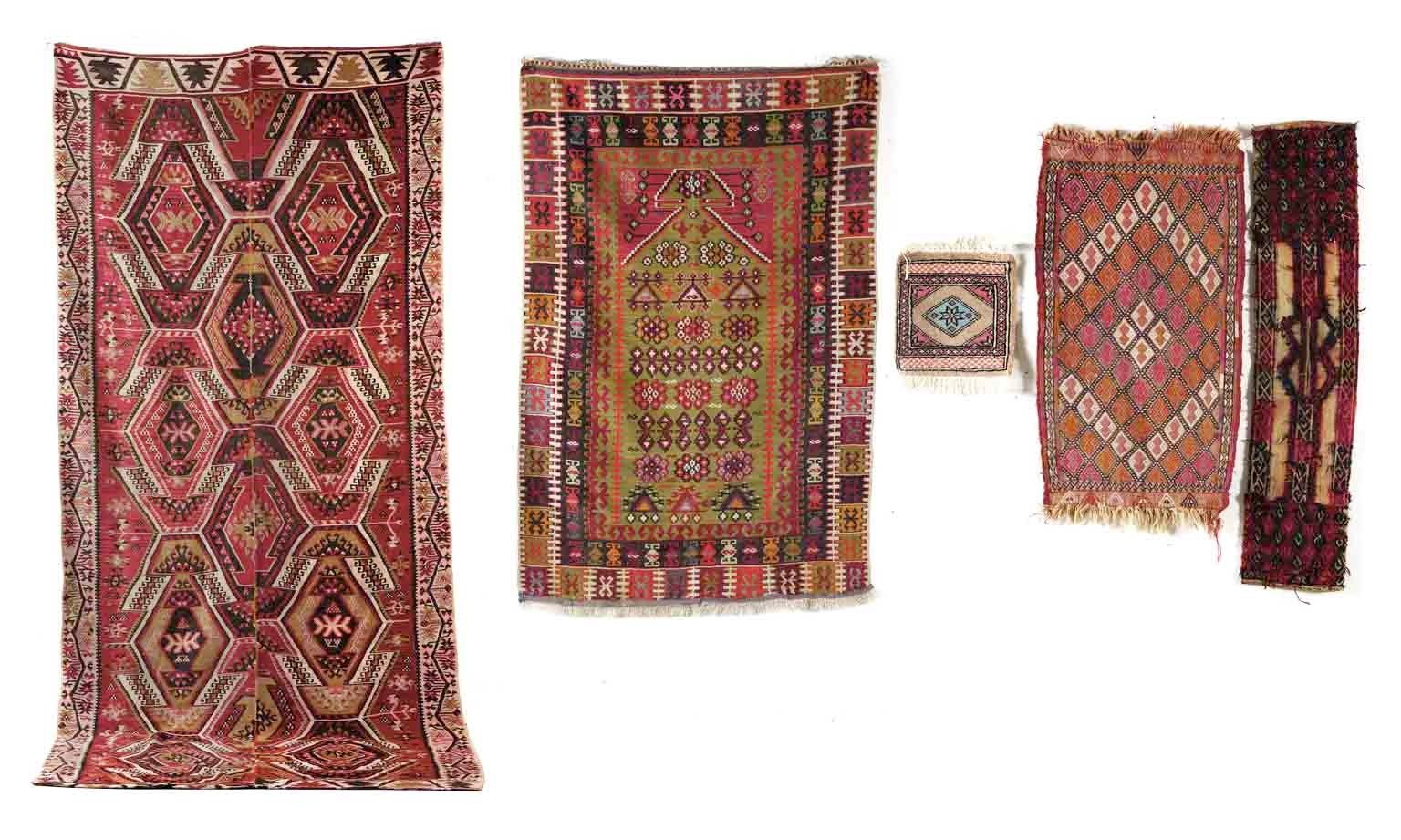 Lotto di 5 tappeti di diversa manifattura e dimensione kilim ed un piccolo pakis [..]