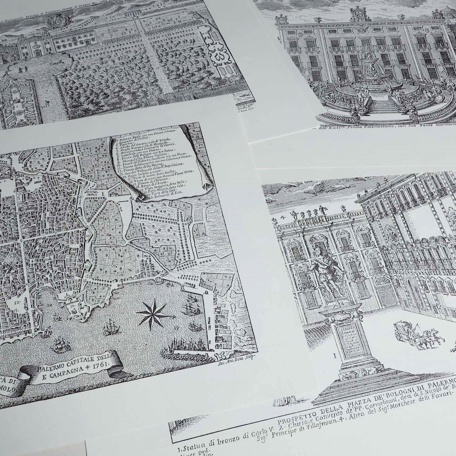 8 stampe La città nella memoria Palermo 700 cm 29,5x42 Editrice Reprint