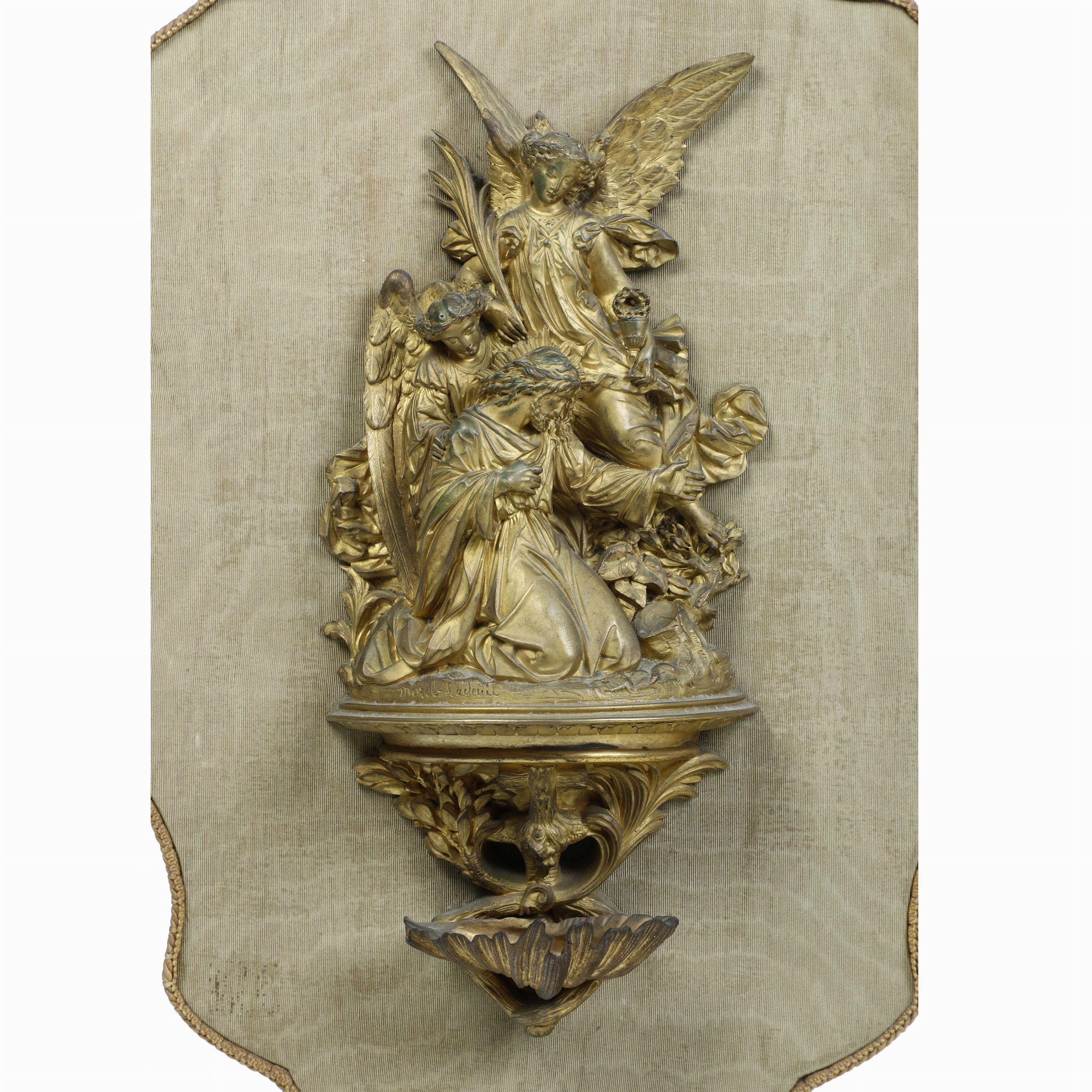 Acquasantiera in bronzo dorato raffigurante Gesù tra gli angeli