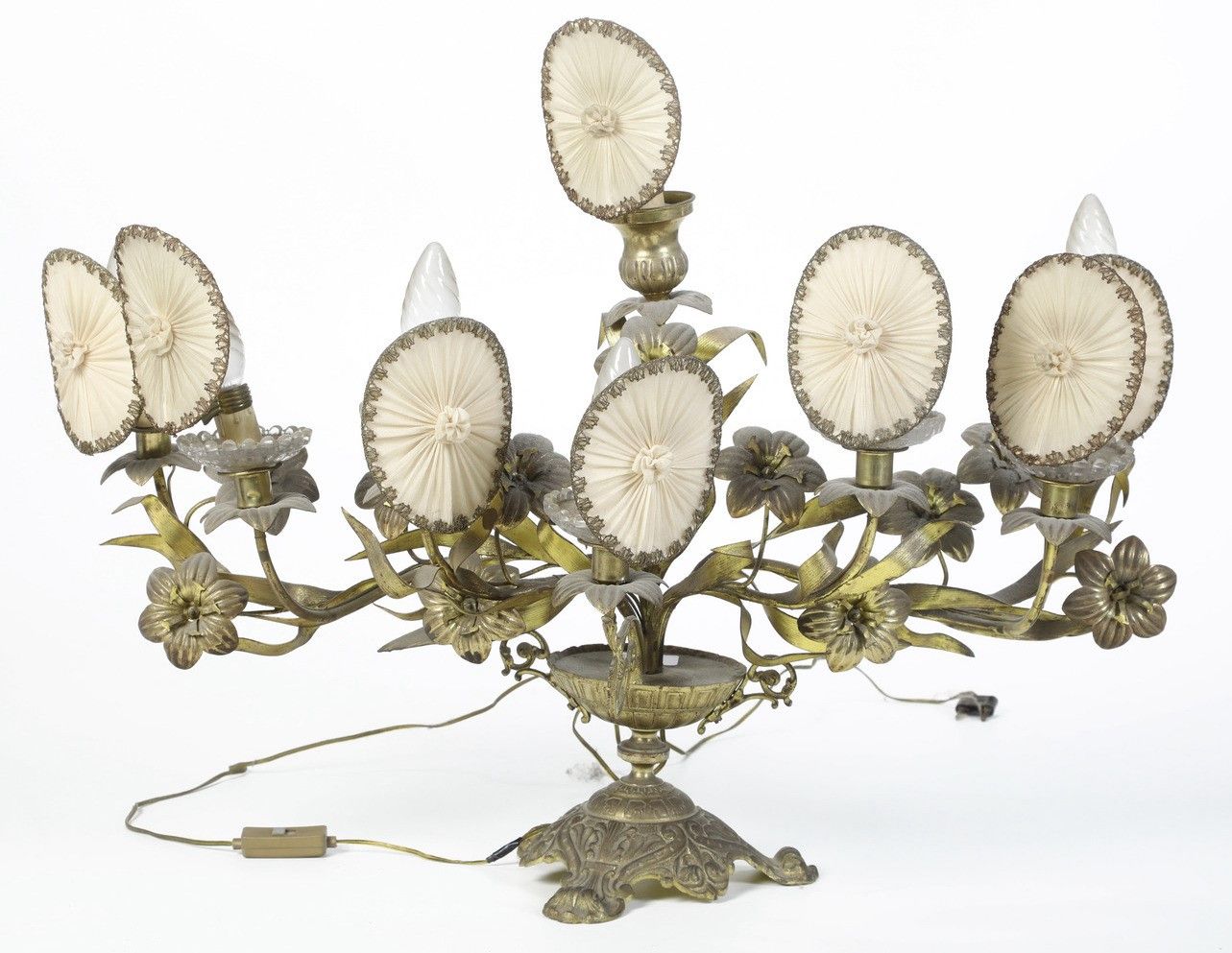 Candelabro a otto luci in metallo dorato. XIX-XX secolo