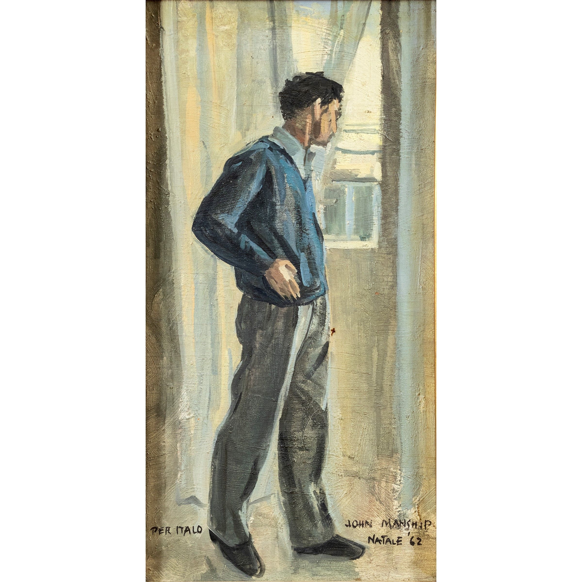 Stati Uniti, 1927 - 2000 Uomo alla finestra, 1962, olio su tavola, firmato e datato in basso a destra, entro cornice