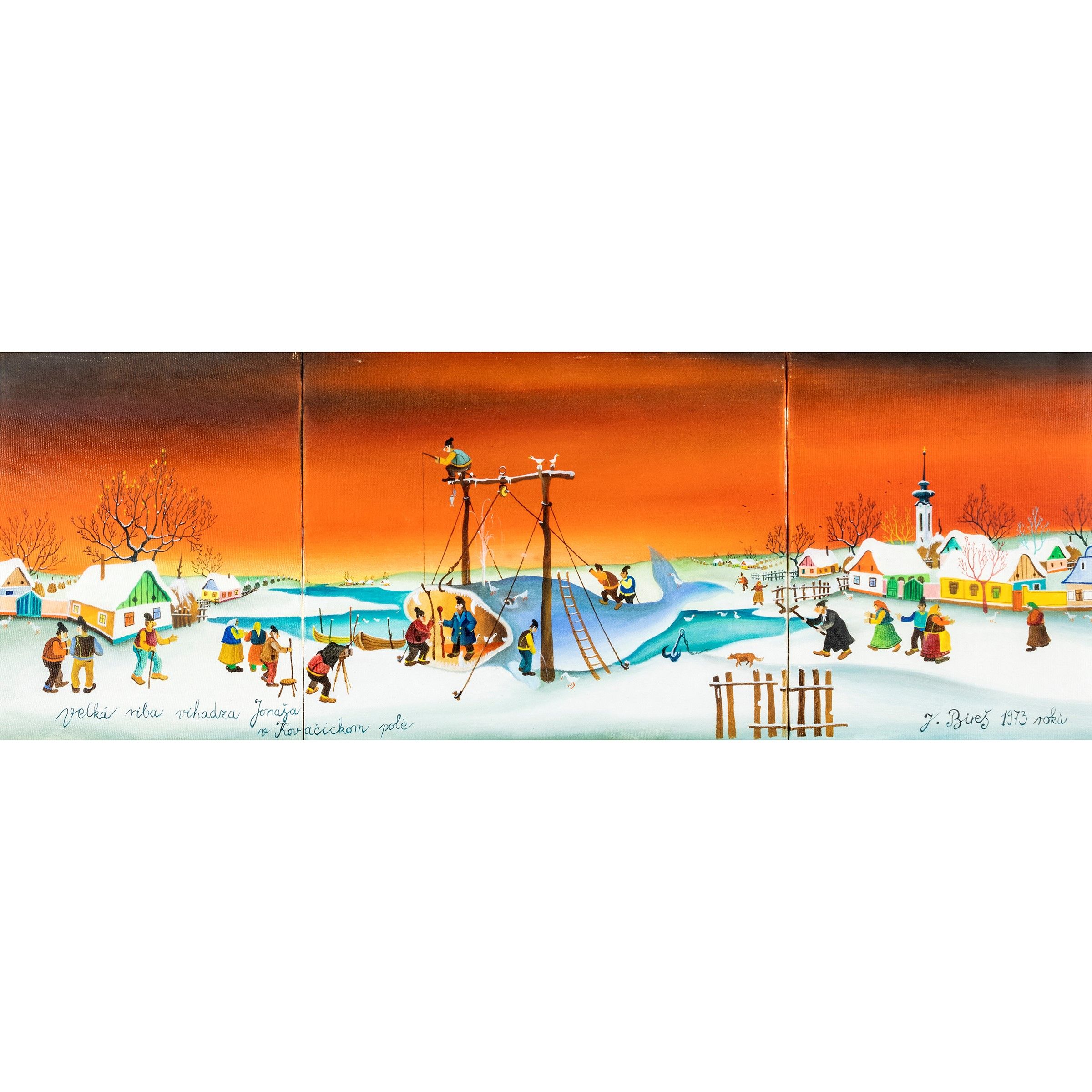 Kovacica 1947 Senza titolo, 1973, trittico olio su tela, firmato e datato in basso a destra e sul retro, entro cornice