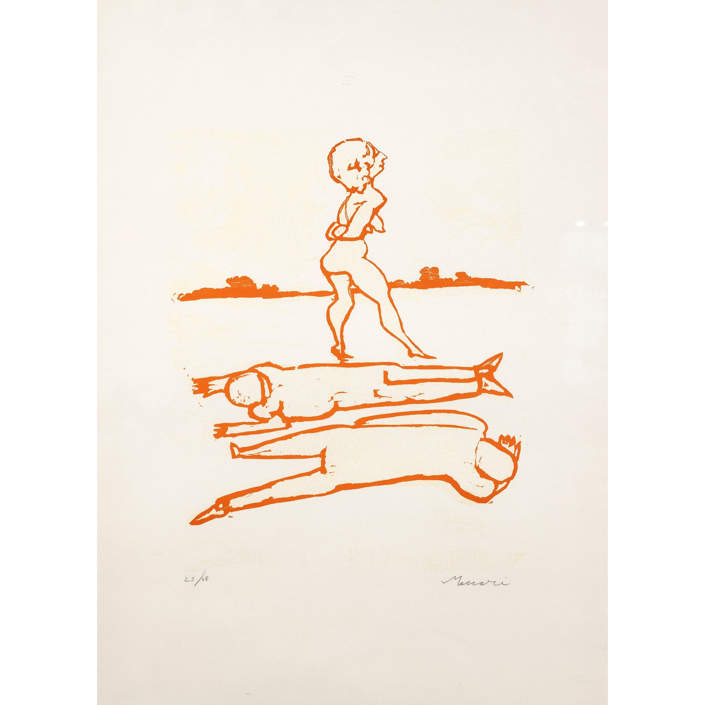 Siena 1898 - Roma 1989 Figure, litografia a colori, es. 25/48, firmata in basso a destra, entro cornice