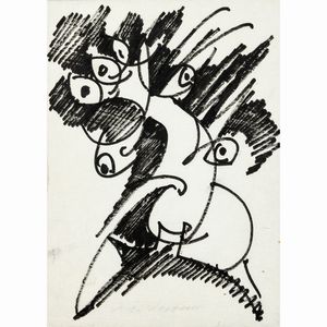 21x29,7 cm. Fontana Liri 1910 - Milano 1998 Senza titolo, pennarello su tela, firmato in basso, entro cornice [..]