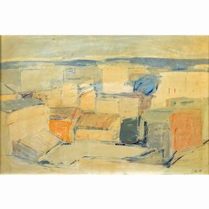 60x80 cm. Sori di Genova 1923 - Roma 2006 Senza titolo, olio su tela, firmato in basso a sinistra e sul retro, [..]