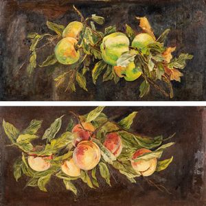 30x59,5 cm. XX Sec. Nature morte, coppia di oli su tavola, entro cornice