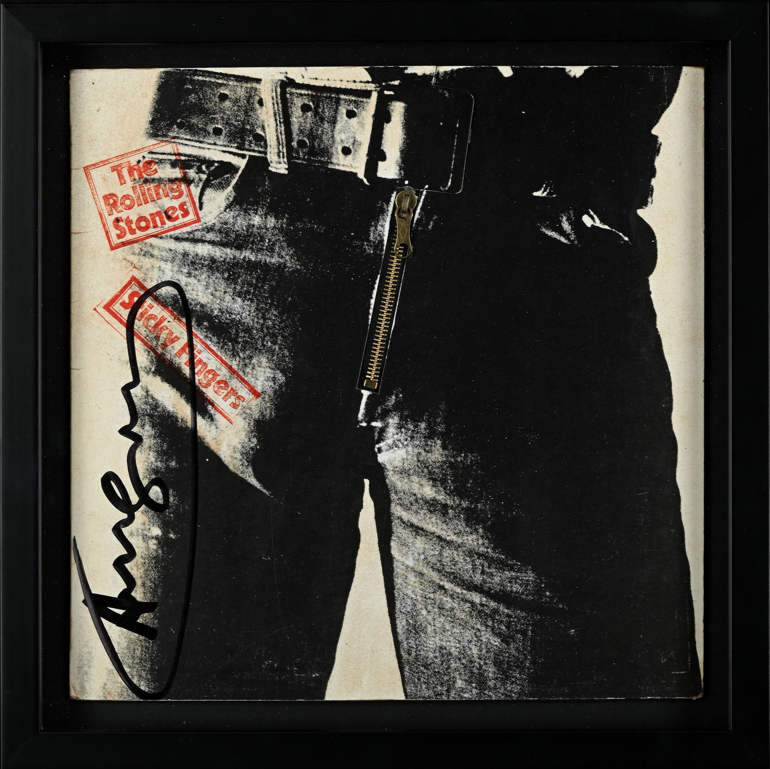 La copertina dell'album Sticky Fingers dei Rolling Stones venne disegnata da Warhol per la pubblicazione dello stesso nel 1971. Firma di lato a sinistra Andy Warhol
