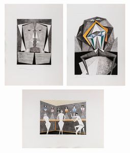 Acquaforti, cm 70x50 Lotto di 3 acquaforti di Moussa entro cartella originale edita dalla ED. M2M. Roma Titolate [..]
