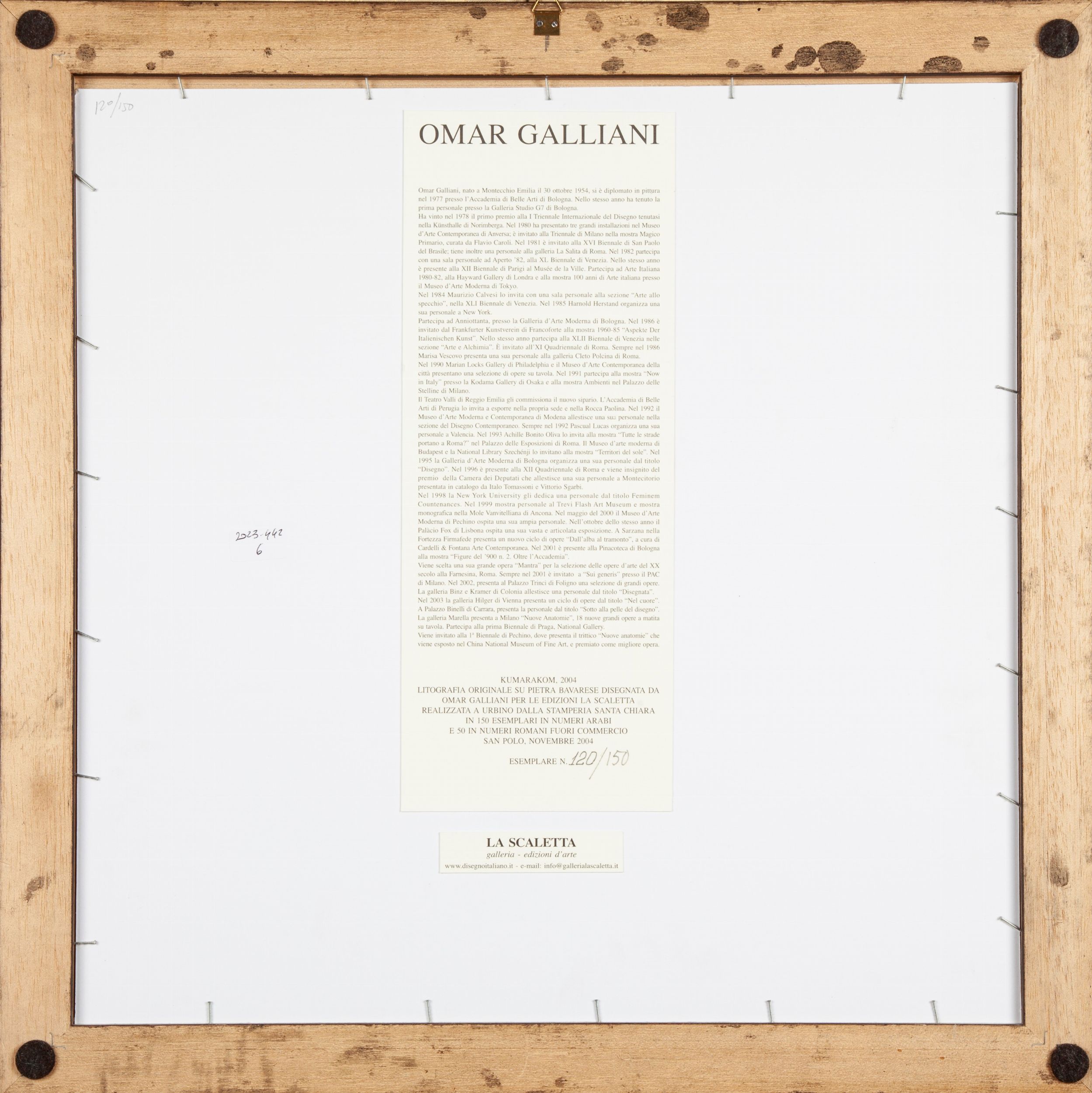 2004 Firma e numerazione Omar Galliani 120/150. Al verso reca cartiglio de La Scaletta, con giustificativo della numerazione