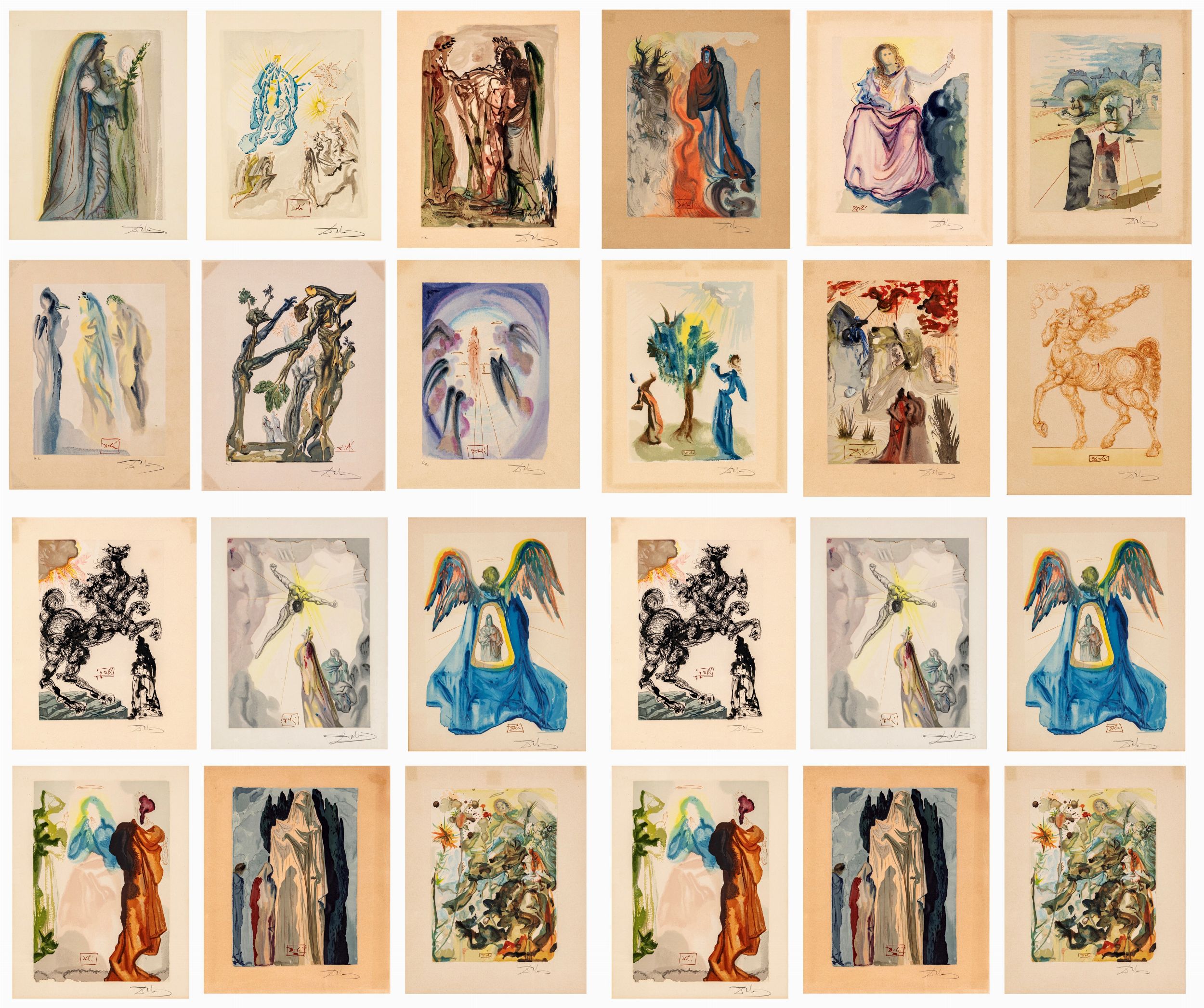 Tutte e 24 le grafiche sono firmate a matita Dalì. Tre sono numerate h.c. e una è numerata p.a.cm 33x26 ognuna