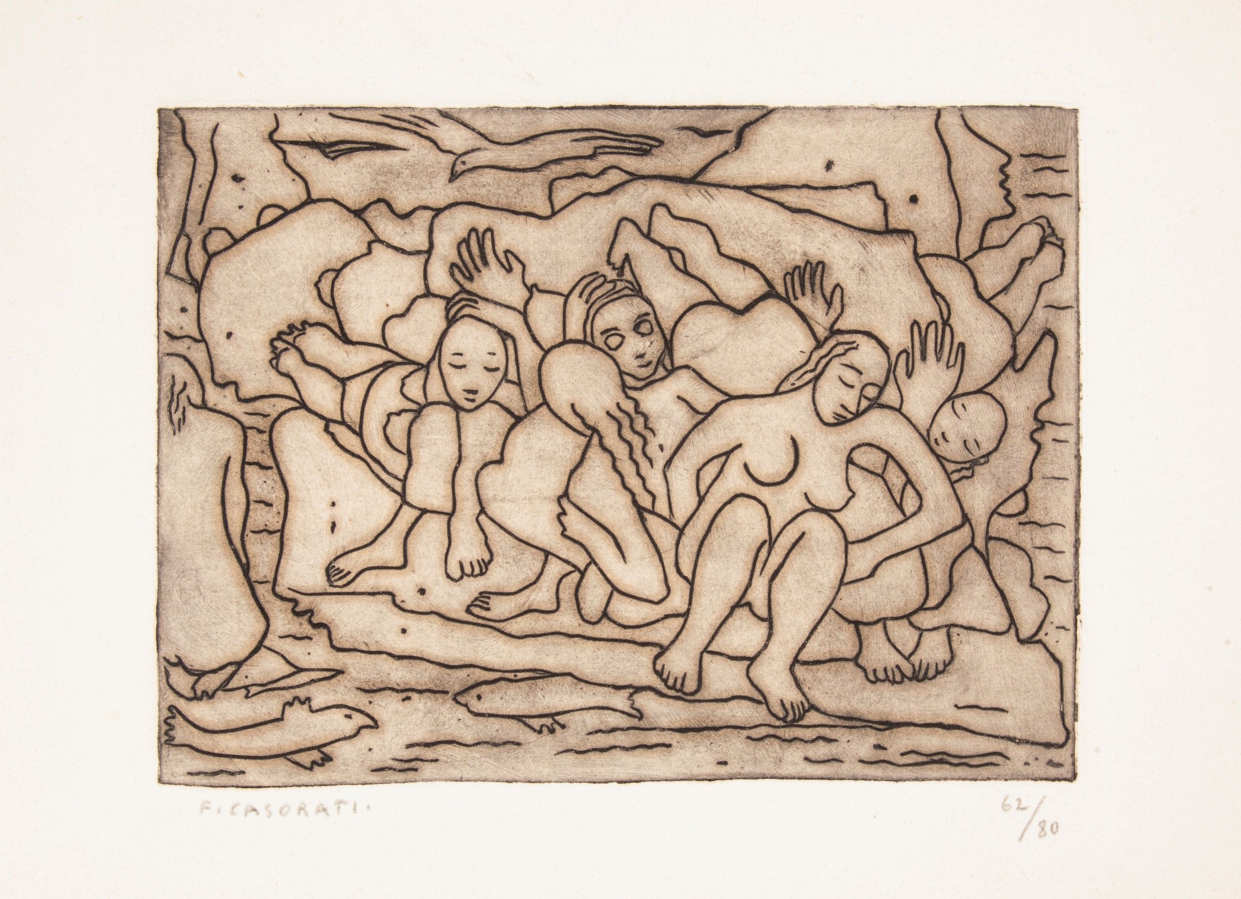 Cartella completa contenente 4 incisioni di Felice Casorati. Tutte le incisioni misurano cm 26,5x38 e sono firmate e numerate F. Casorati 62/80
