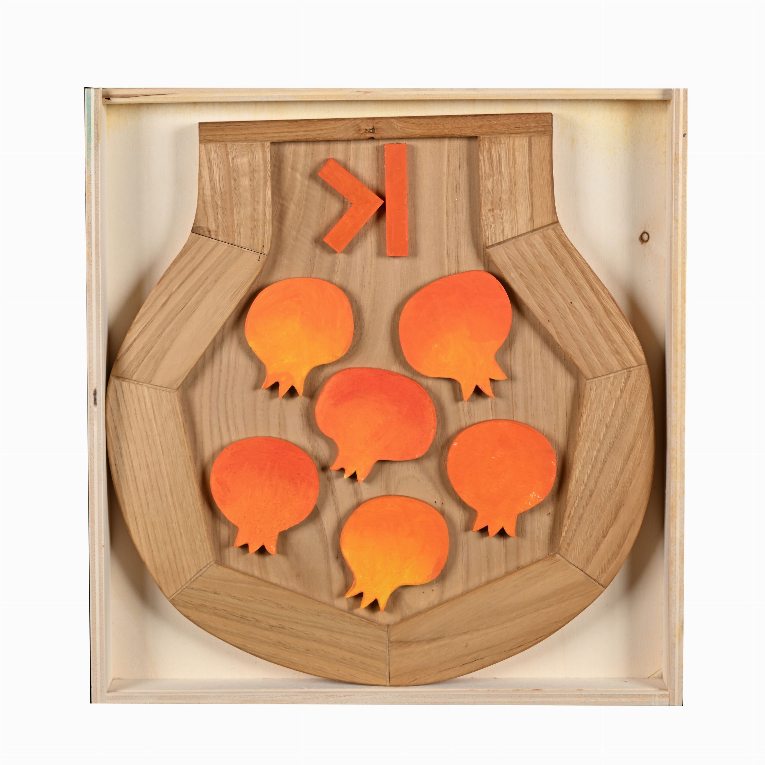 Scultura multiplo in legno dipinto, cm 40x37,5 - entro scatola originale in legno cm 42,5x41