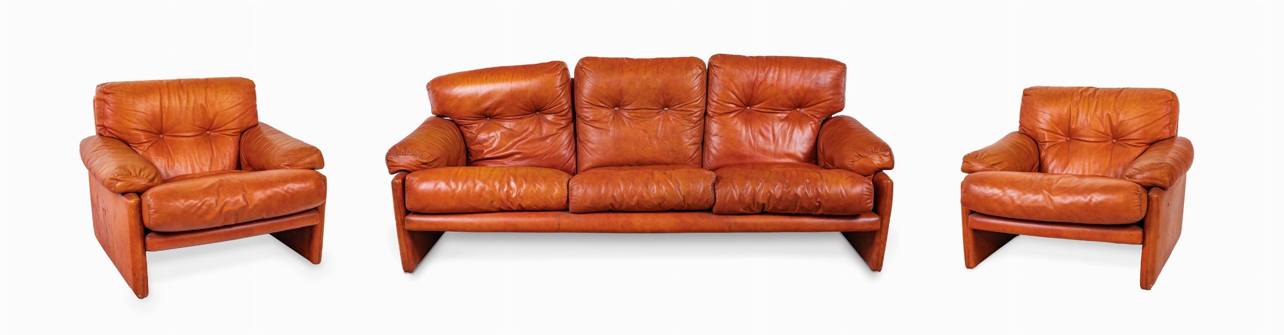 Anni '60 circa Lotto composto da un divano a tre posti e due poltrone. Prod. B&B, Italia, 1960 circa. Il divano misura cm 70x210x80 circa e le due poltrone misurano ognuna cm 70x100x95 circa.