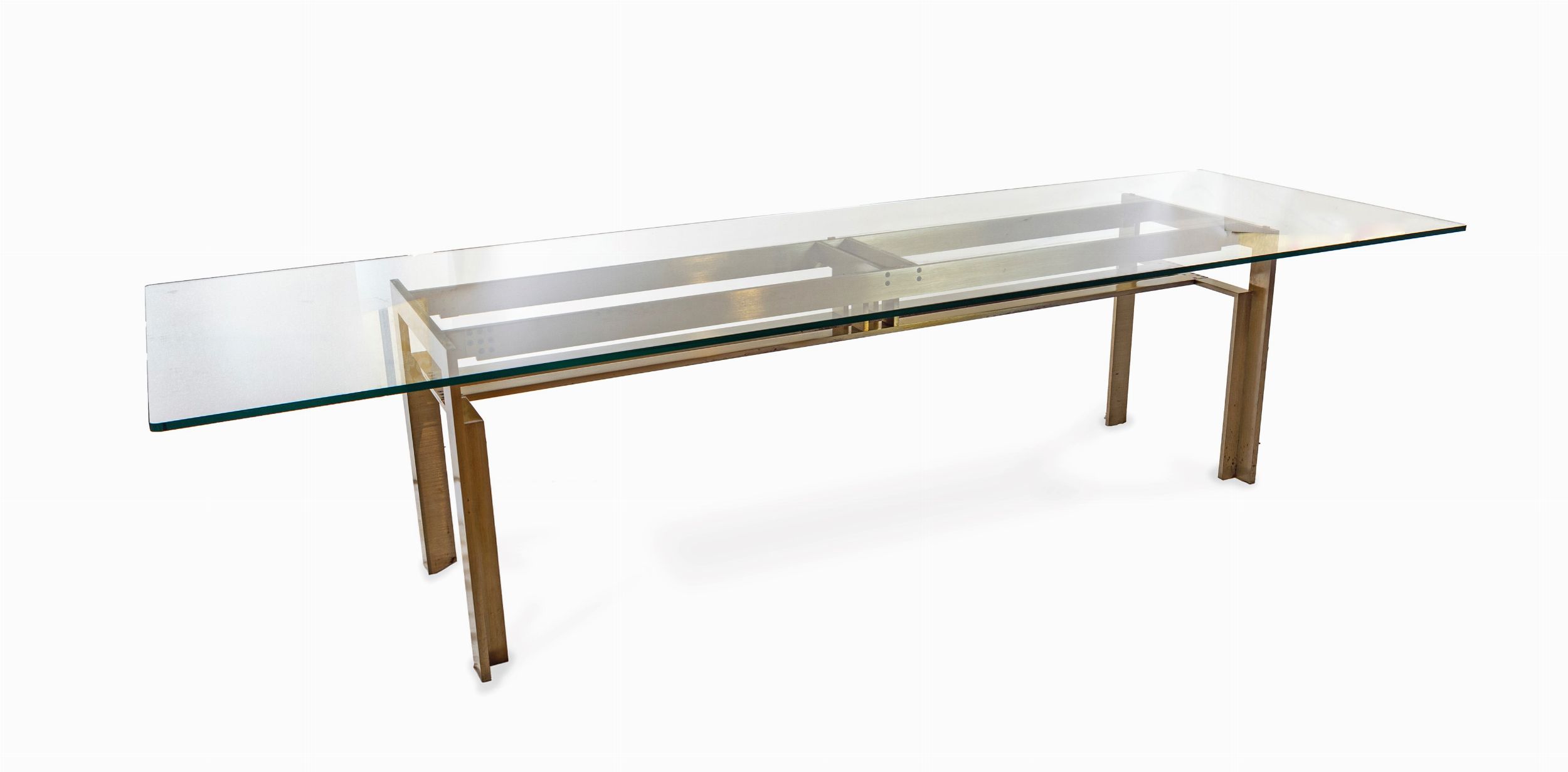 Acciaio ottonato e piano in cristallo molato, cm 306x72x100