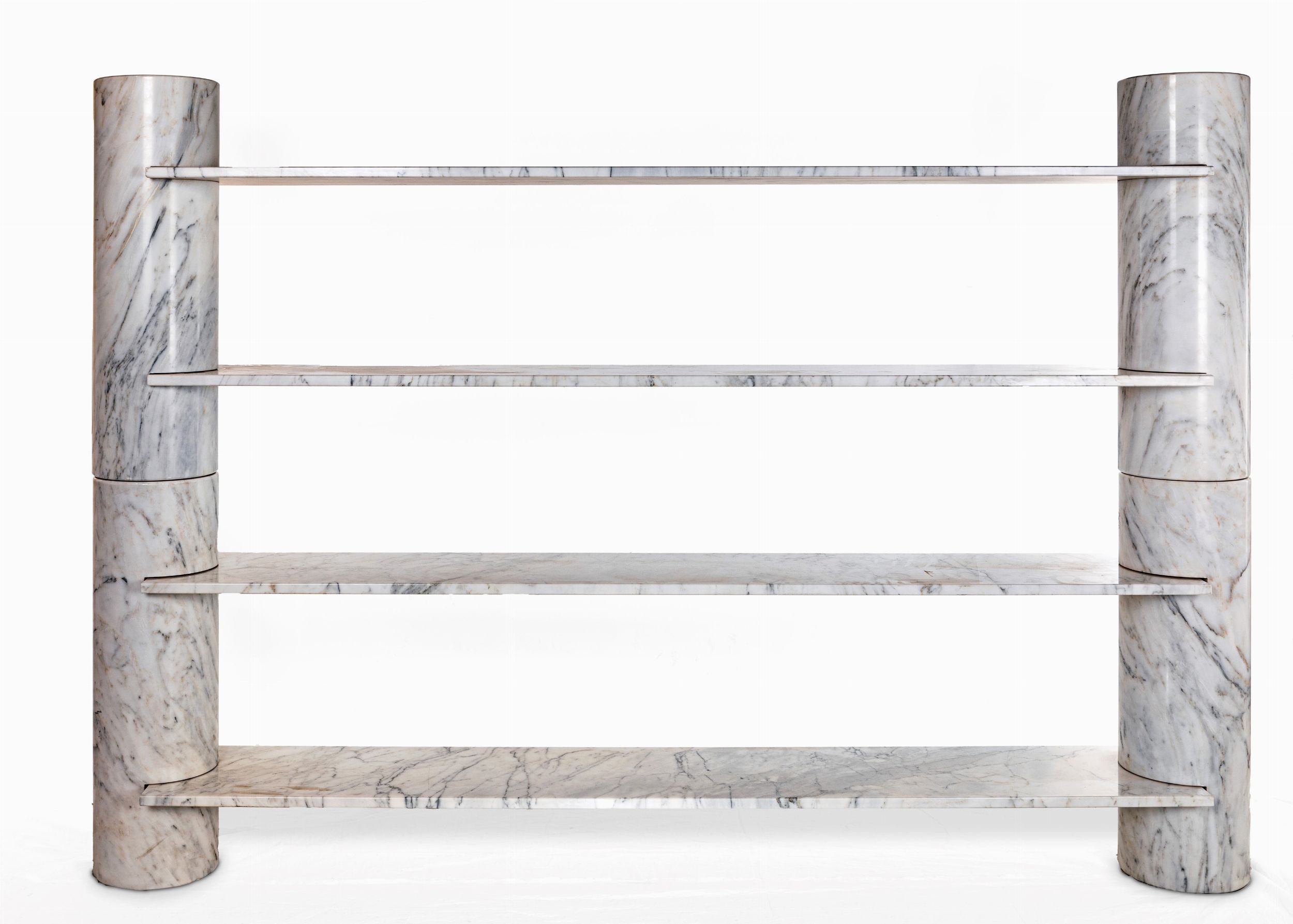 1980 ca Sostegni e piani in marmo di Carrara. Produzione Skipper, Italia. Etichetta della Fucina Skipper Italia.