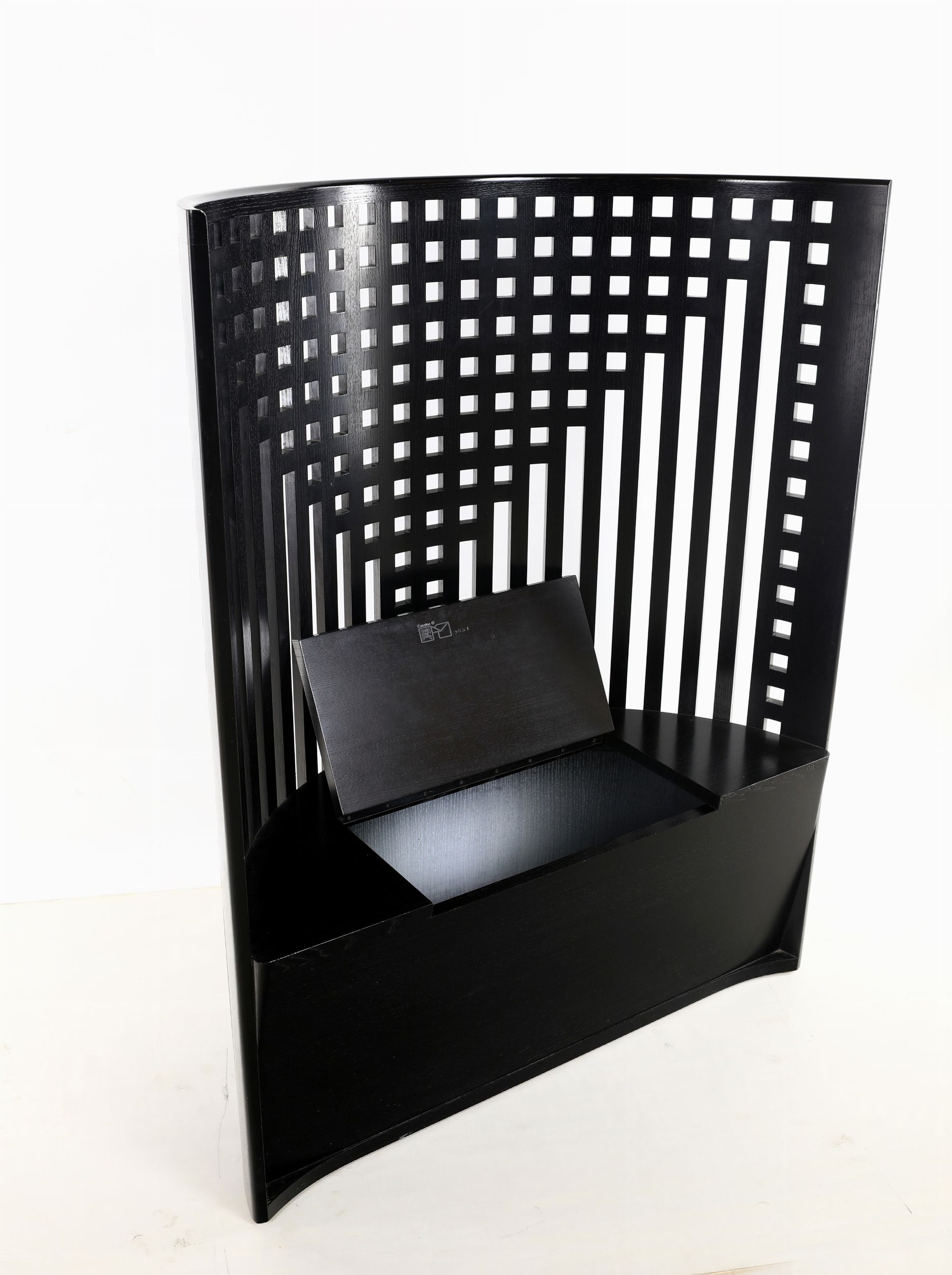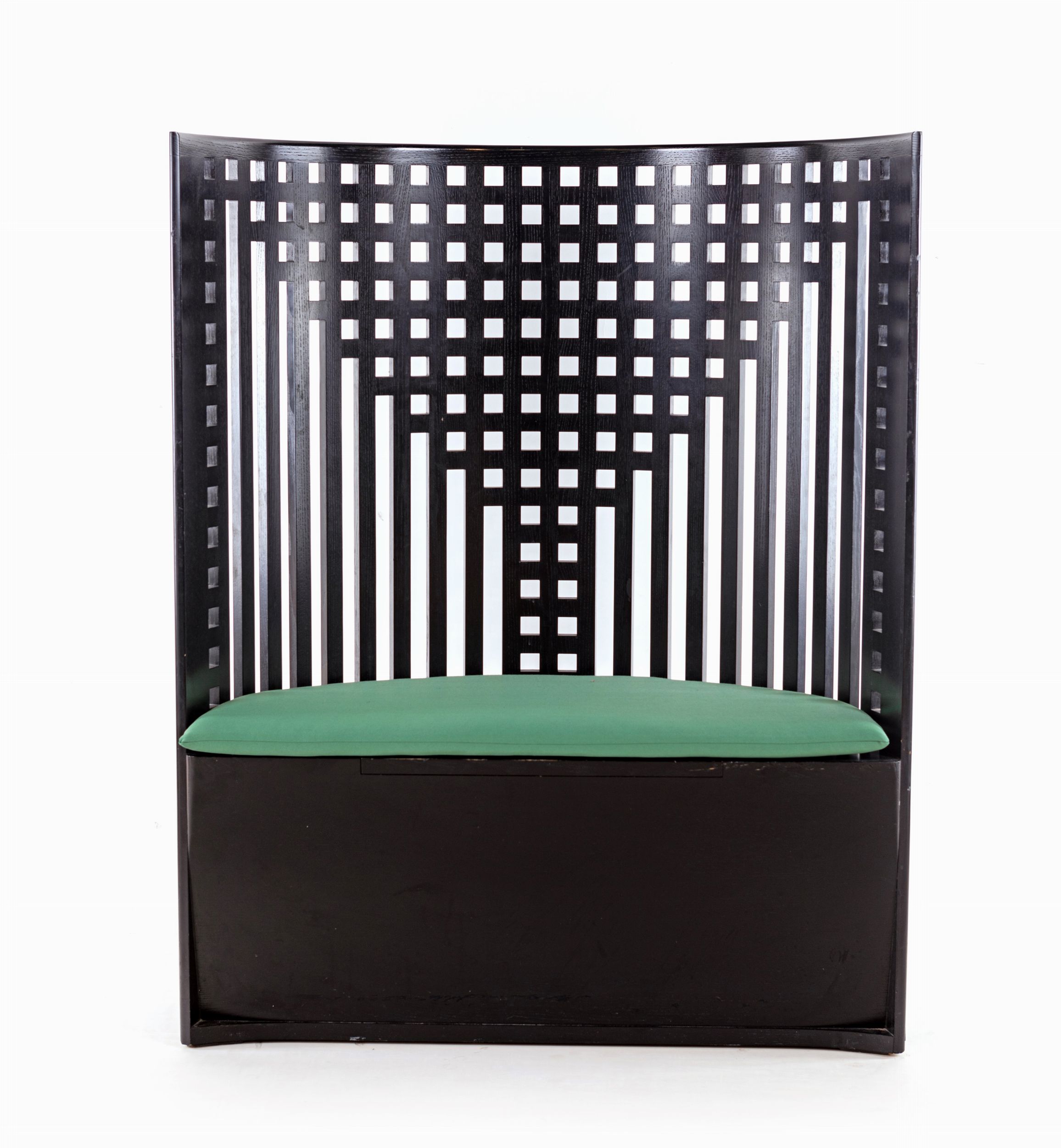Legno di frassino verniciato di nero e cuscino in stoffa, cm 120x94x43