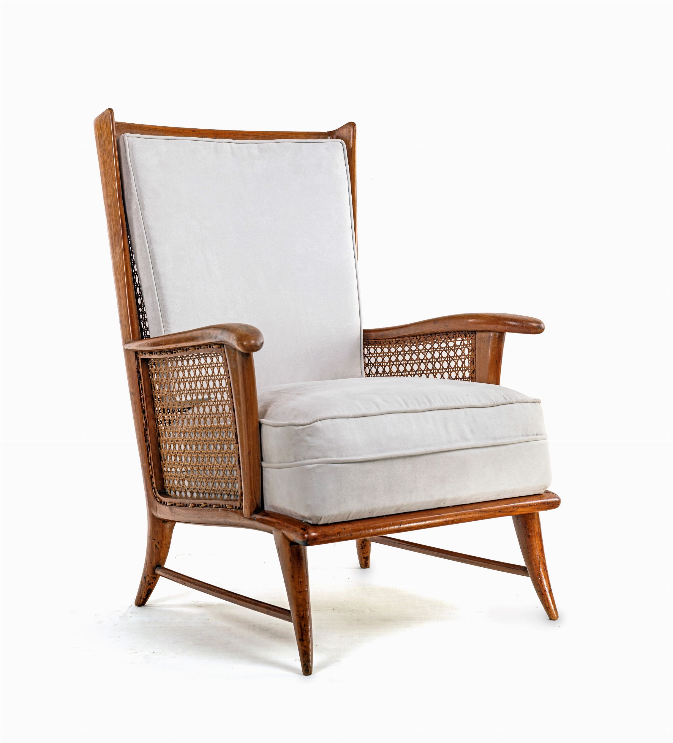 Legno di ciliegio, canna d'India, cuscinatura in velluto, cm 89x55x55