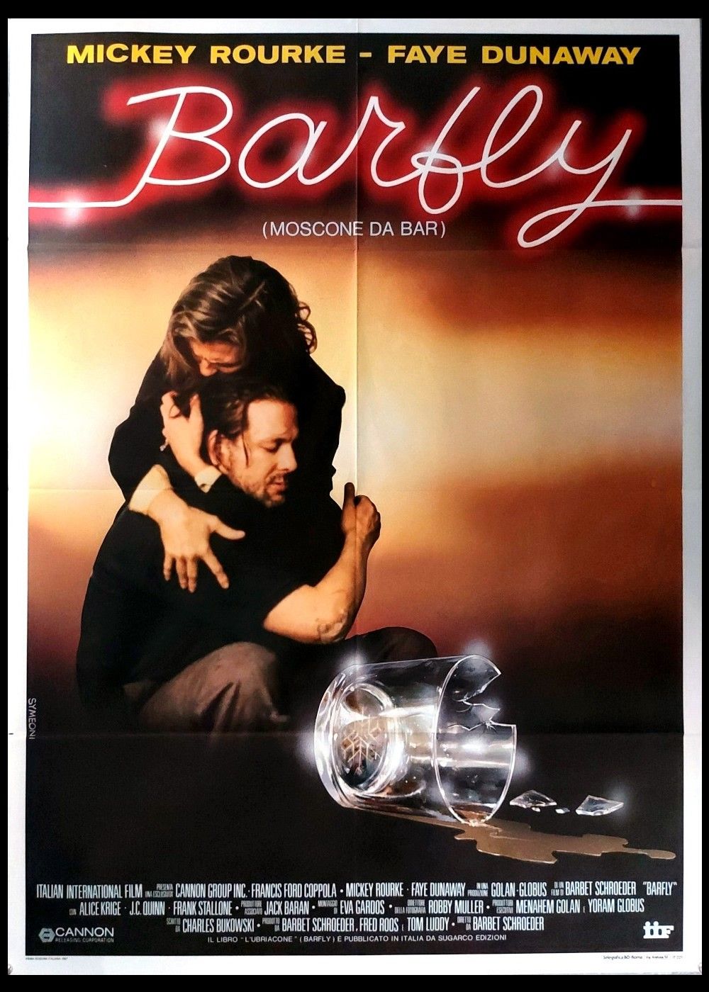 1987 Bozzetto originale realizzato da Symeoni per la locandina ufficiale del film Barfly, diretto da Barbet Schroeder e scritto da Charles Bukowski con Mickey Rourke e Faye Dunaway nel 1987. Si allega una versione alternativa del bozzetto. Entrambi firmati.