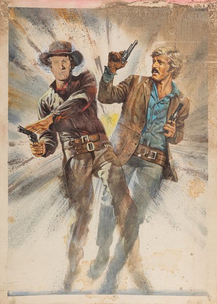 tempera su cartoncino, 40 x 55,5 cm 1969 Bozzetto originale realizzato da Iaia per la locandina ufficiale del film Butch Cassidy, diretto da George Roy Hill con Paul Newman e Robert Redford nel 1969. Tracce di umidità con caduta di pigmento, fori di affissioni agli angoli. Firmato.