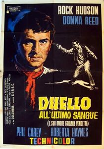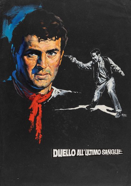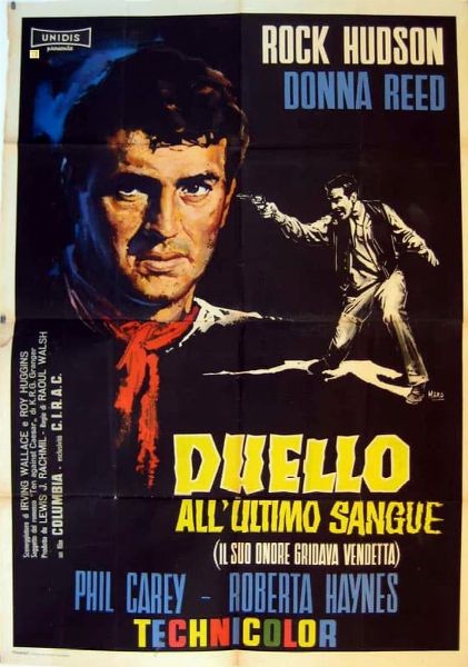 1960 Bozzetto originale realizzato da Maro per la locandina ufficiale del film Duello all'ultimo sangue, diretto da Raoul Walsh con Rock Hudson, Donna Reed nel 1953. Firmato.