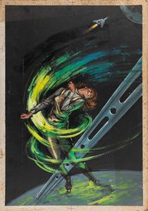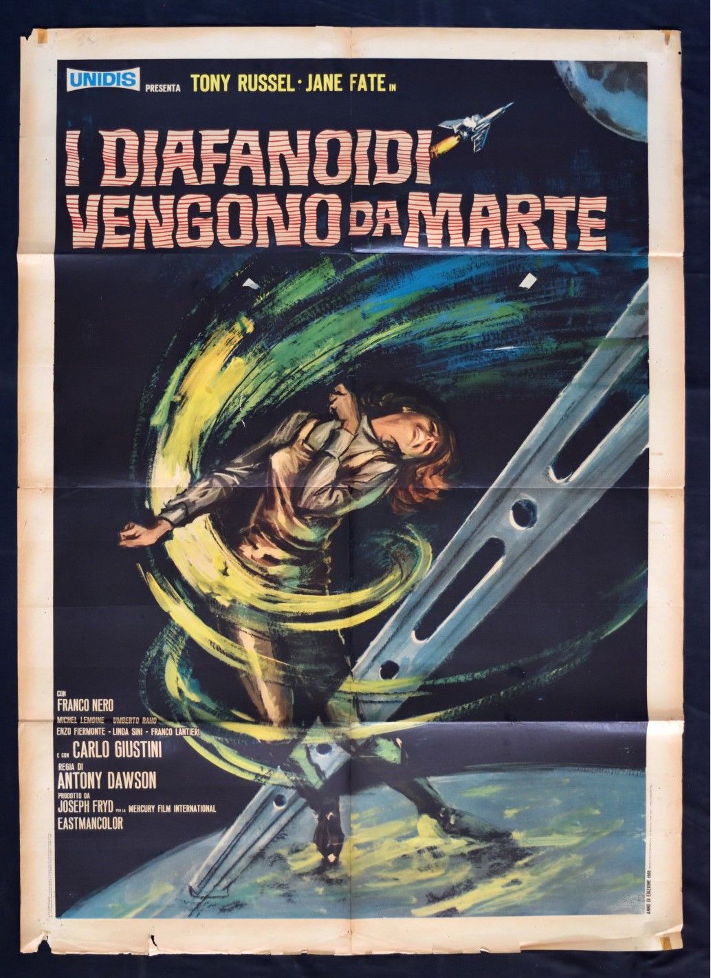 tempera su cartone, 42 x 60 cm 1966 Bozzetto originale realizzato per la locandina ufficiale del film I diafanoidi vengono da Marte, diretto da Antonio Margheriti (sotto lo pseudonimo di Anthony M. Dawson) con Franco Nero e Elisabetta Gastone nel 1966.