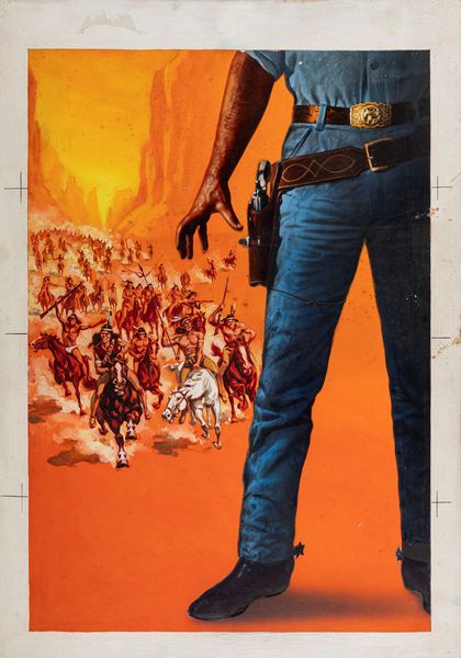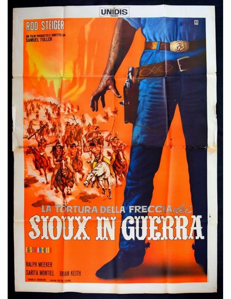 1957 Bozzetto originale realizzato per la locandina ufficiale del film La tortura della freccia, diretto da Samuel Fuller con Charles Bronson e Rod Steiger nel 1957.